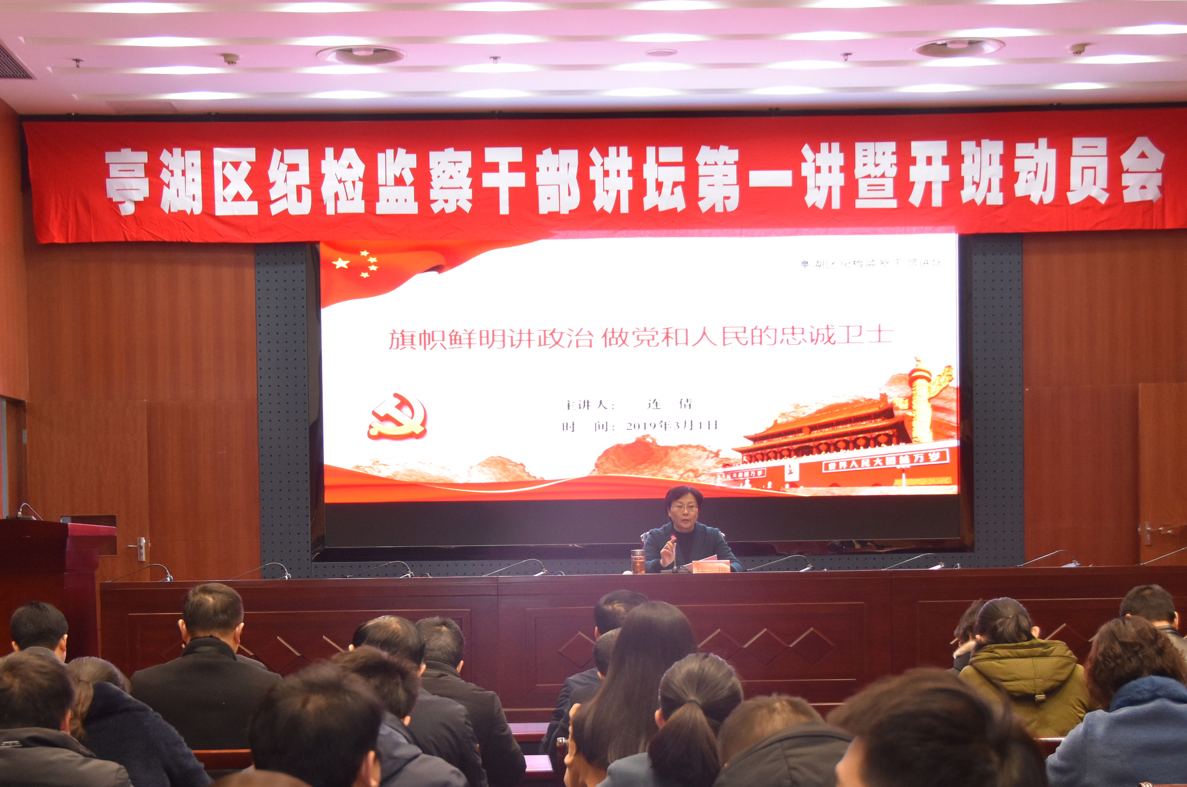 为深入学习贯彻习近平新时代中国特色社会主义思想和党的十九大精神,正确把握党风廉政建设和反腐败斗争的新形势,打造忠诚干净担当的高素质、专业化纪检监察“铁军”,推动新时代纪检监察工作高质量发展。3月1日上午,亭湖区纪检监察干部讲坛第一讲暨开班动员会在区行政中心四楼多功能会议室举行。