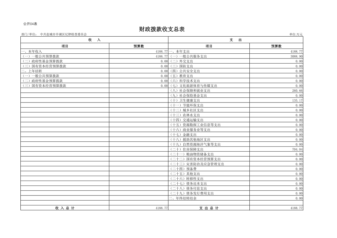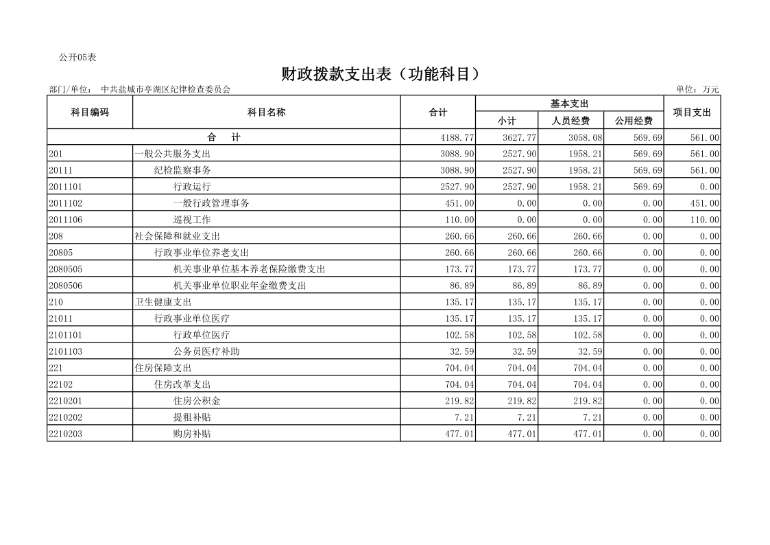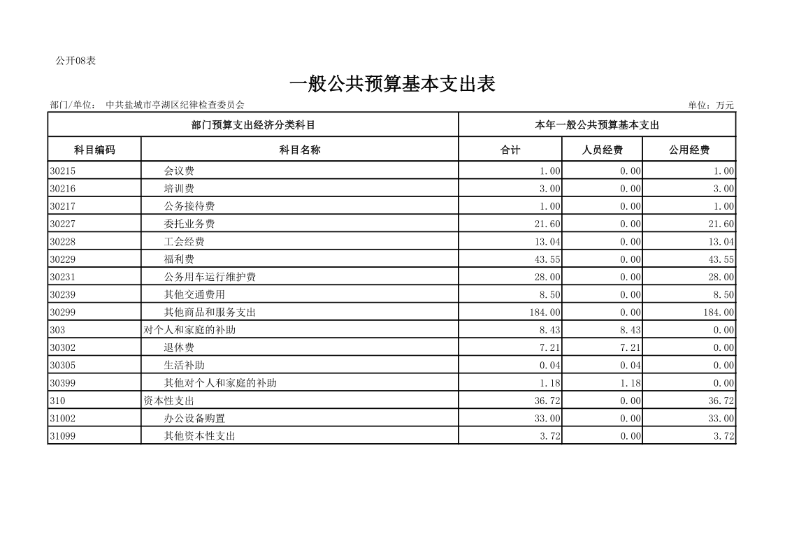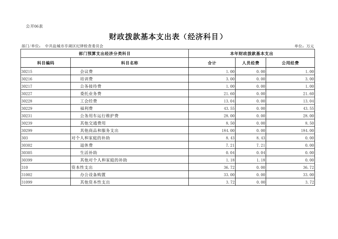 中共盐城市亭湖区纪律检查委员会2020年预算公开