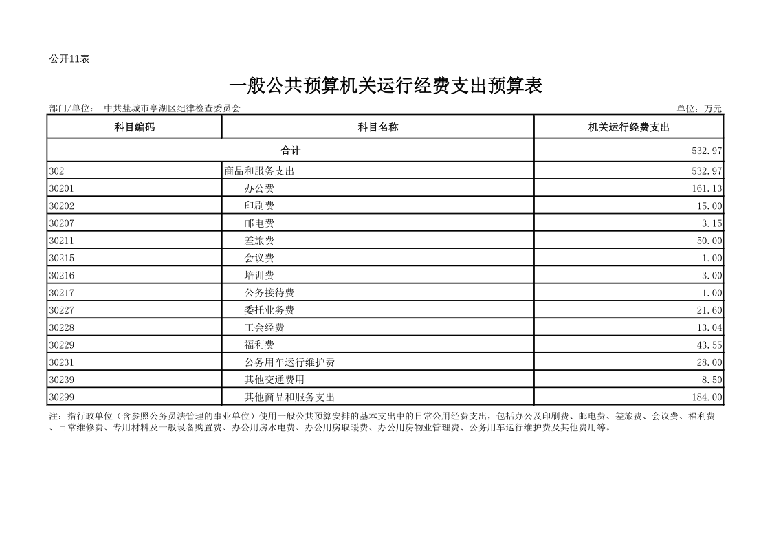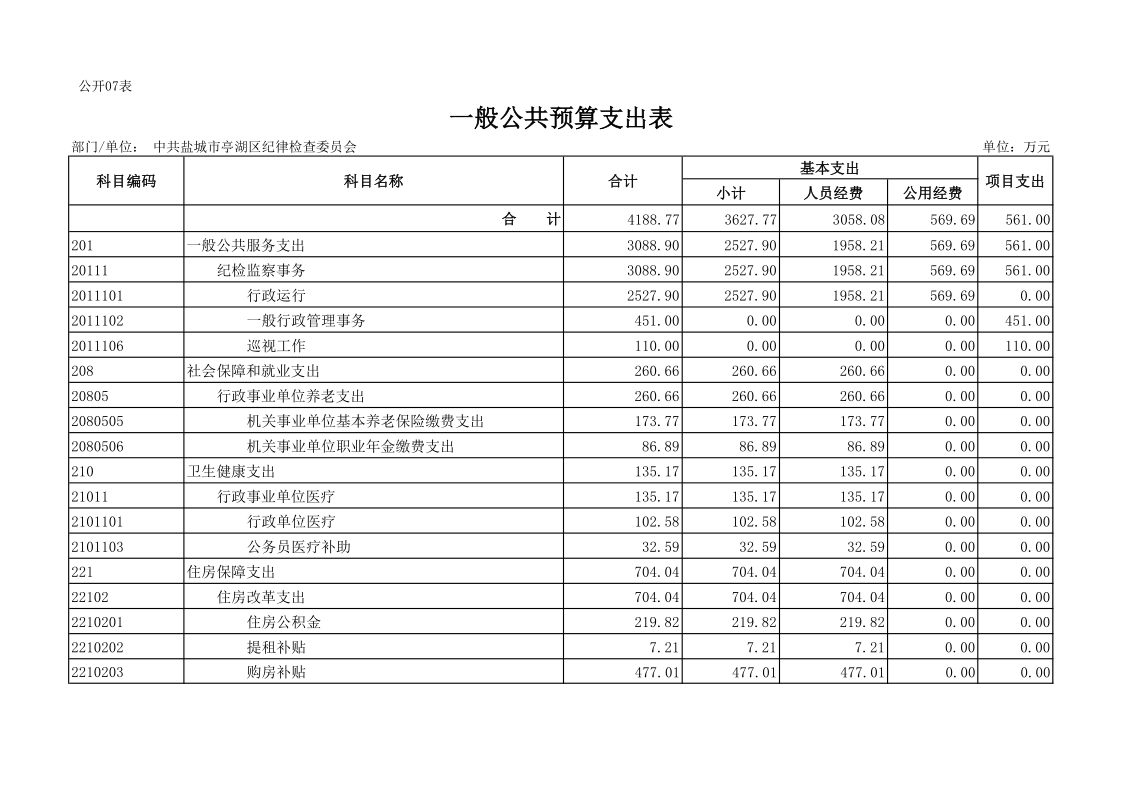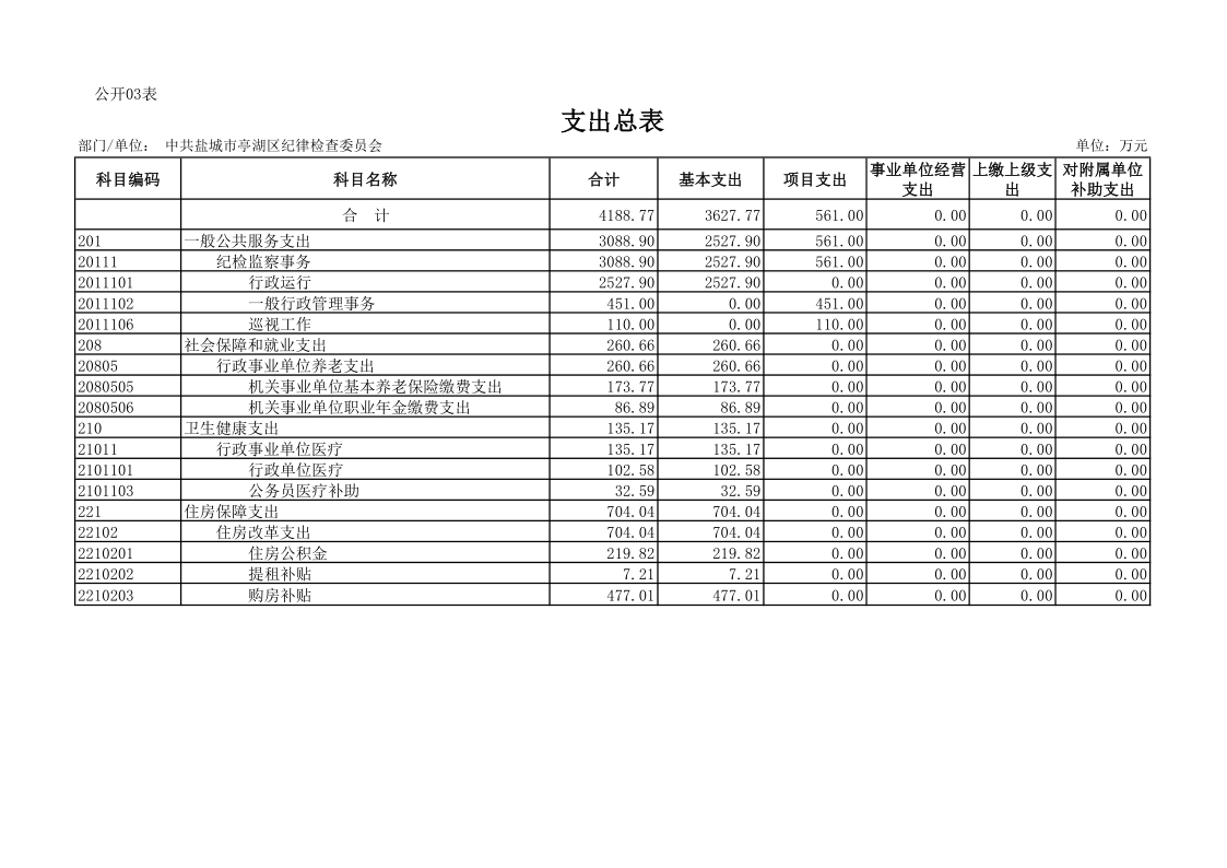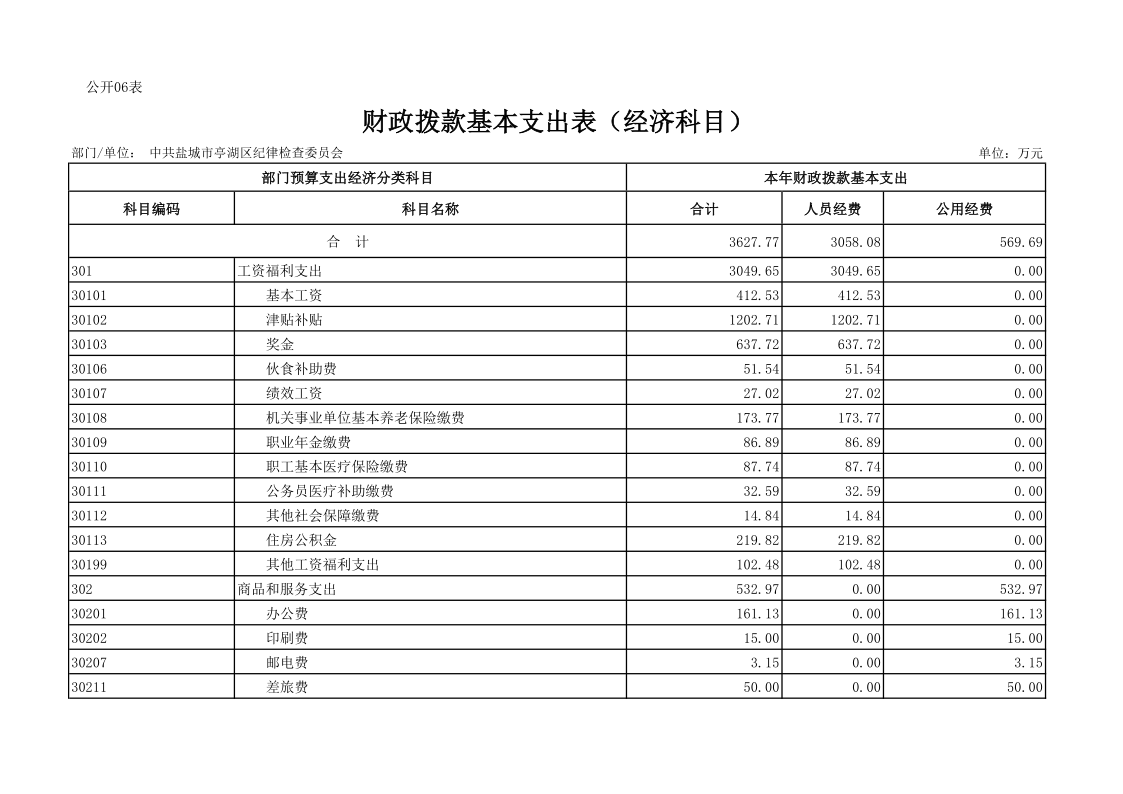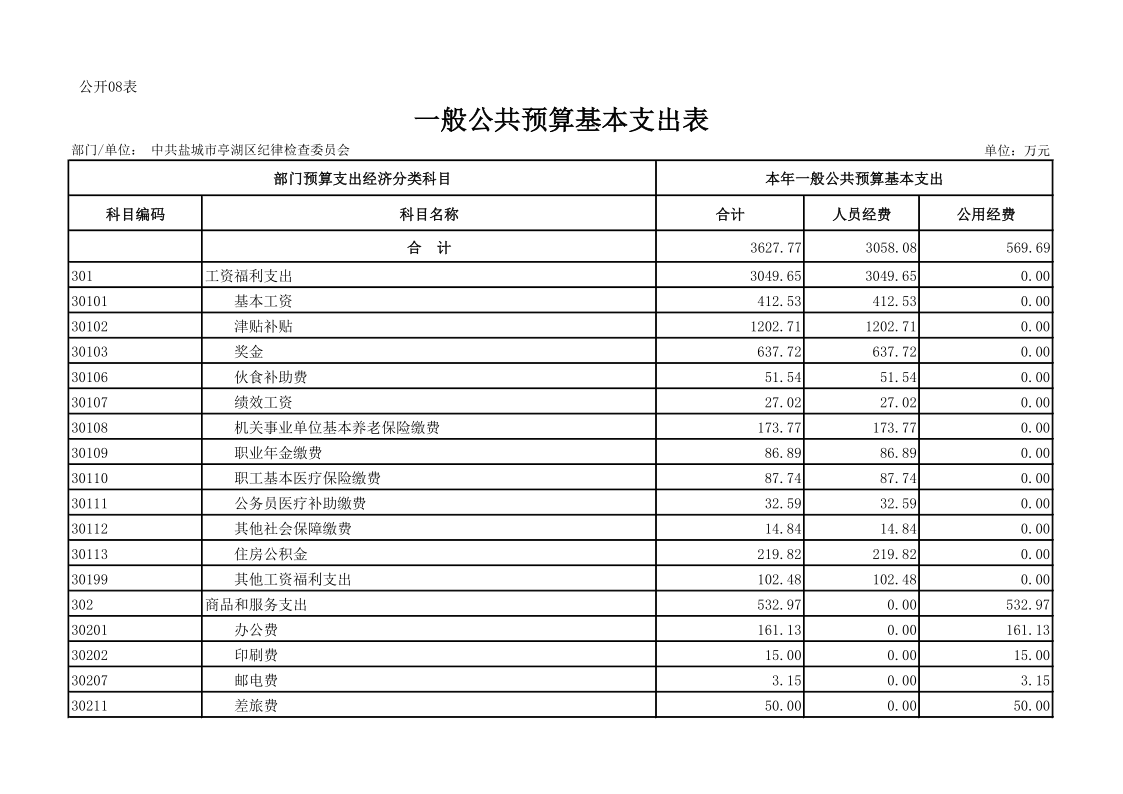 中共盐城市亭湖区纪律检查委员会2020年预算公开
