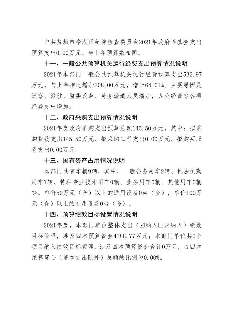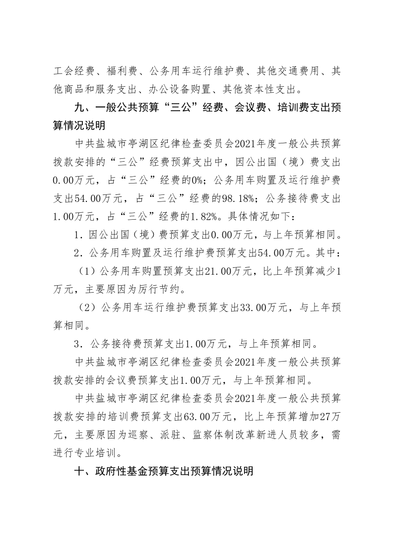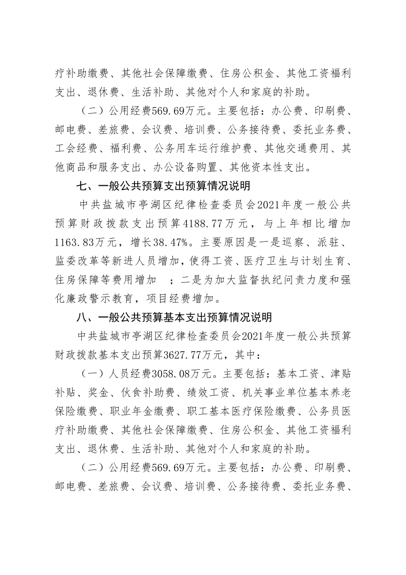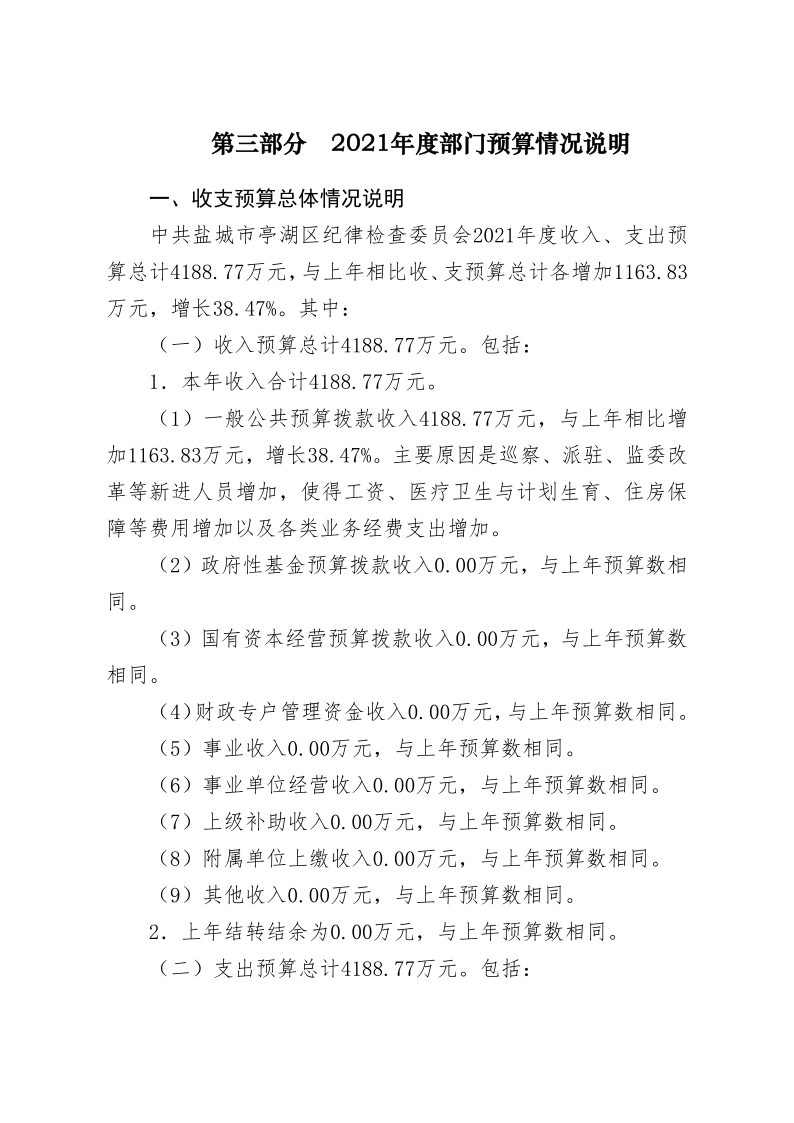 中共盐城市亭湖区纪律检查委员会2021年度预算公开