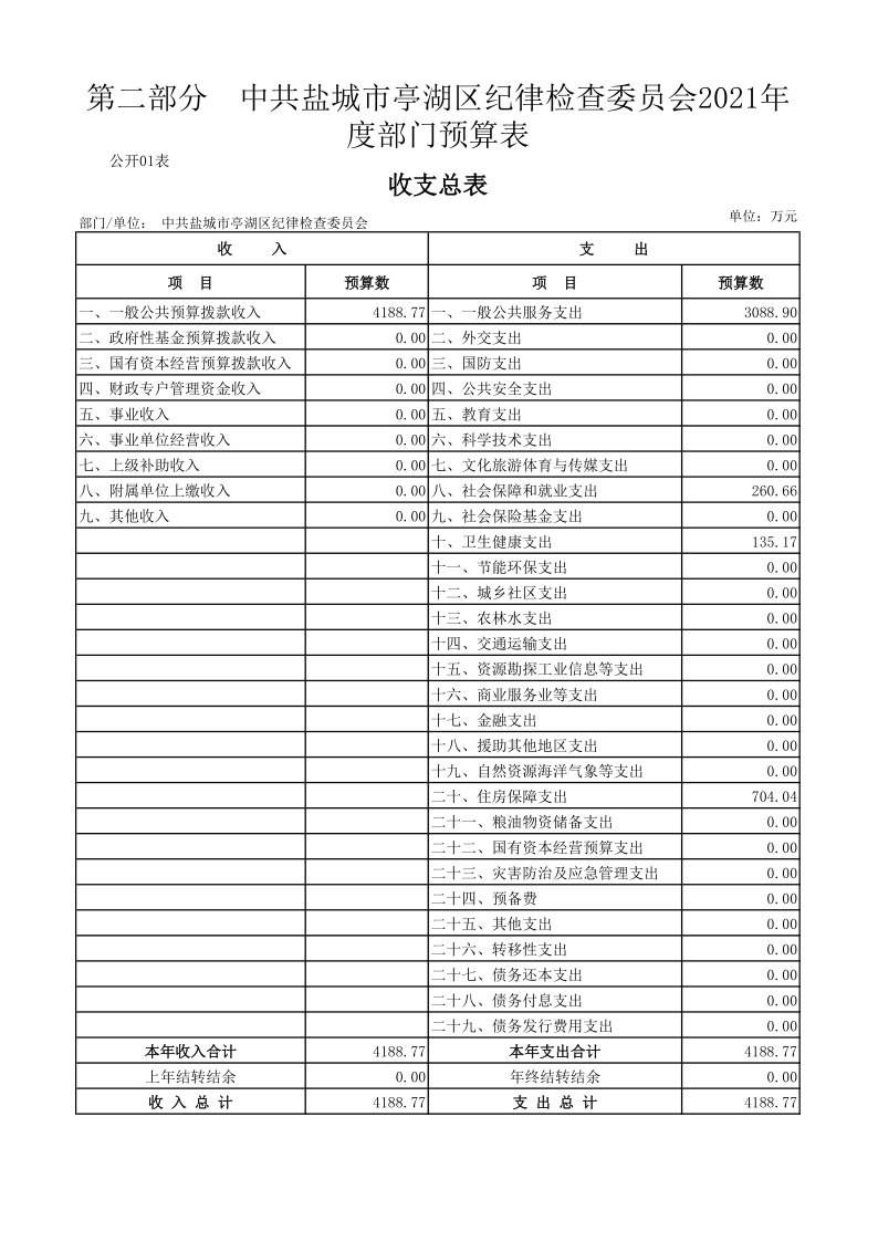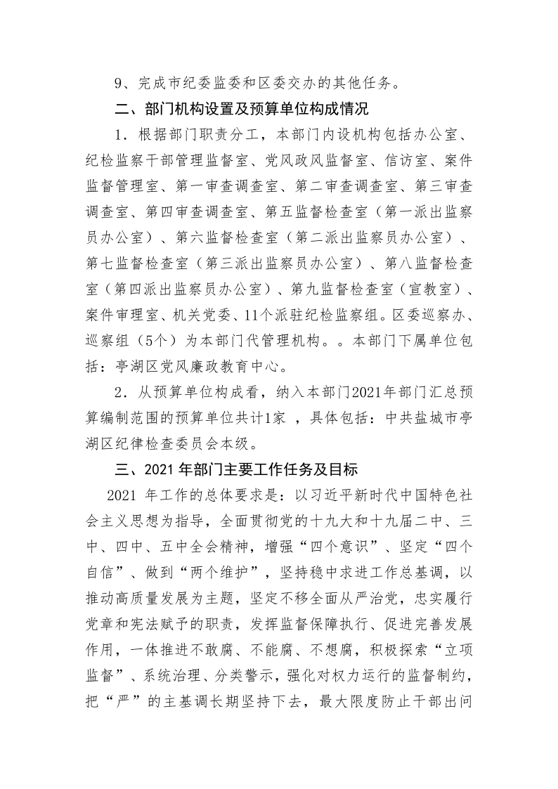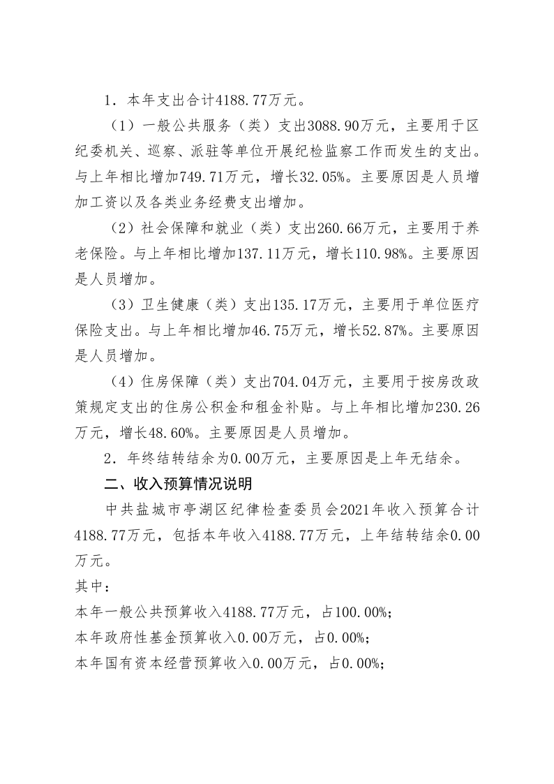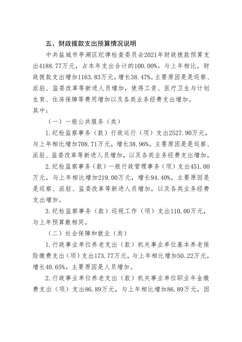 中共盐城市亭湖区纪律检查委员会2021年度预算公开