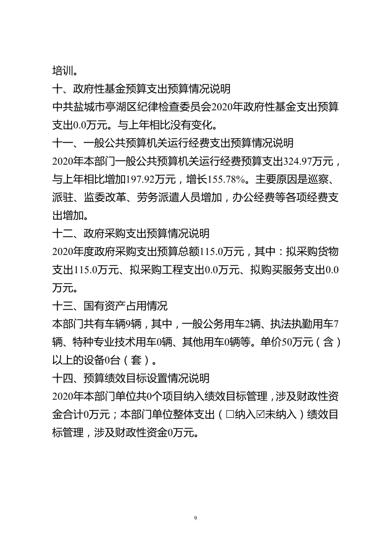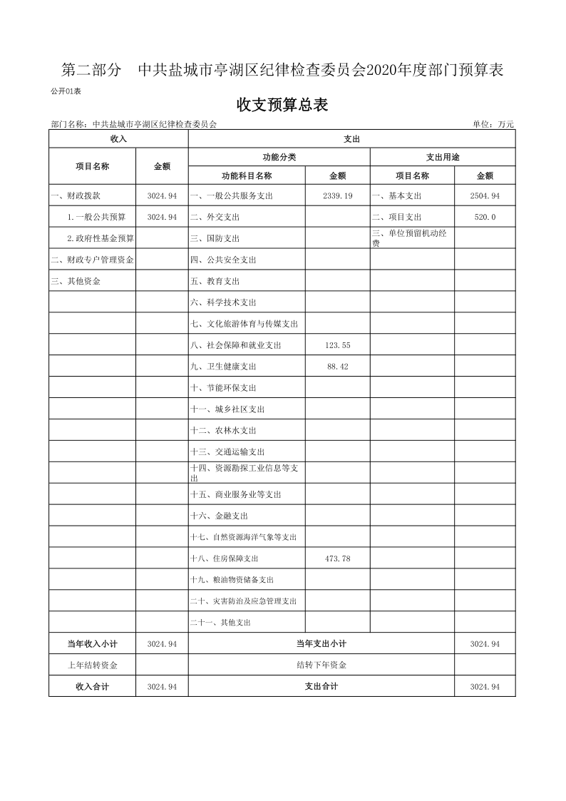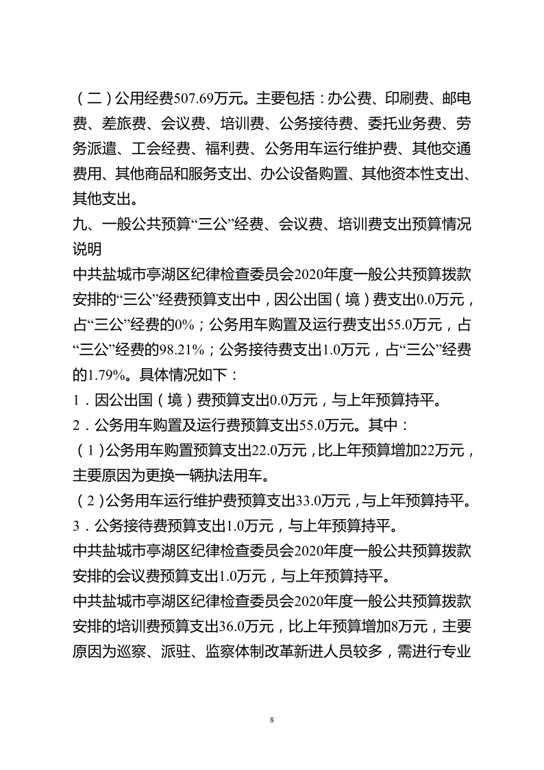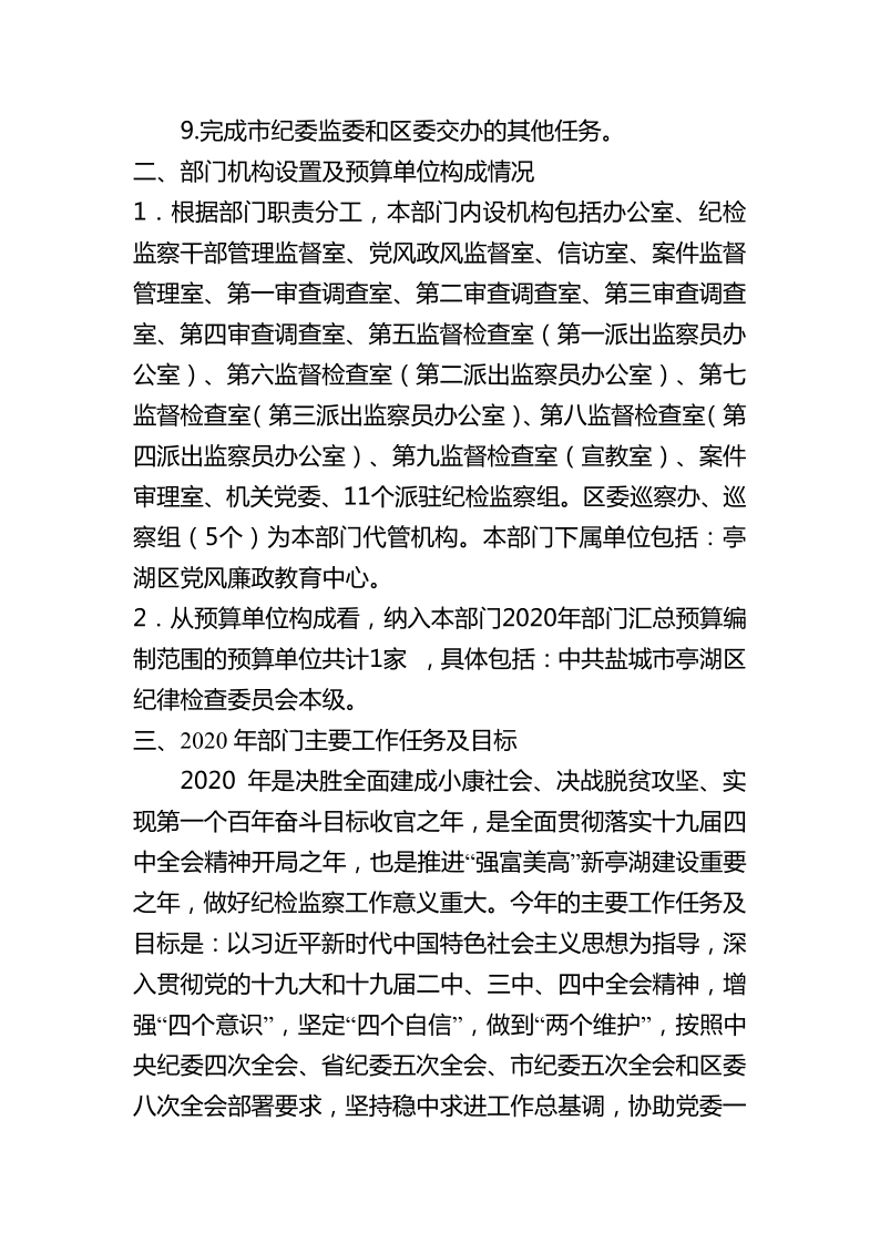 中共盐城市亭湖区纪律检查委员会2020年预算公开