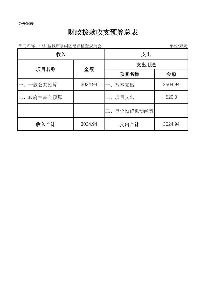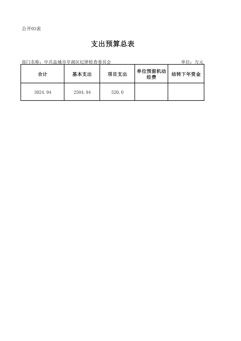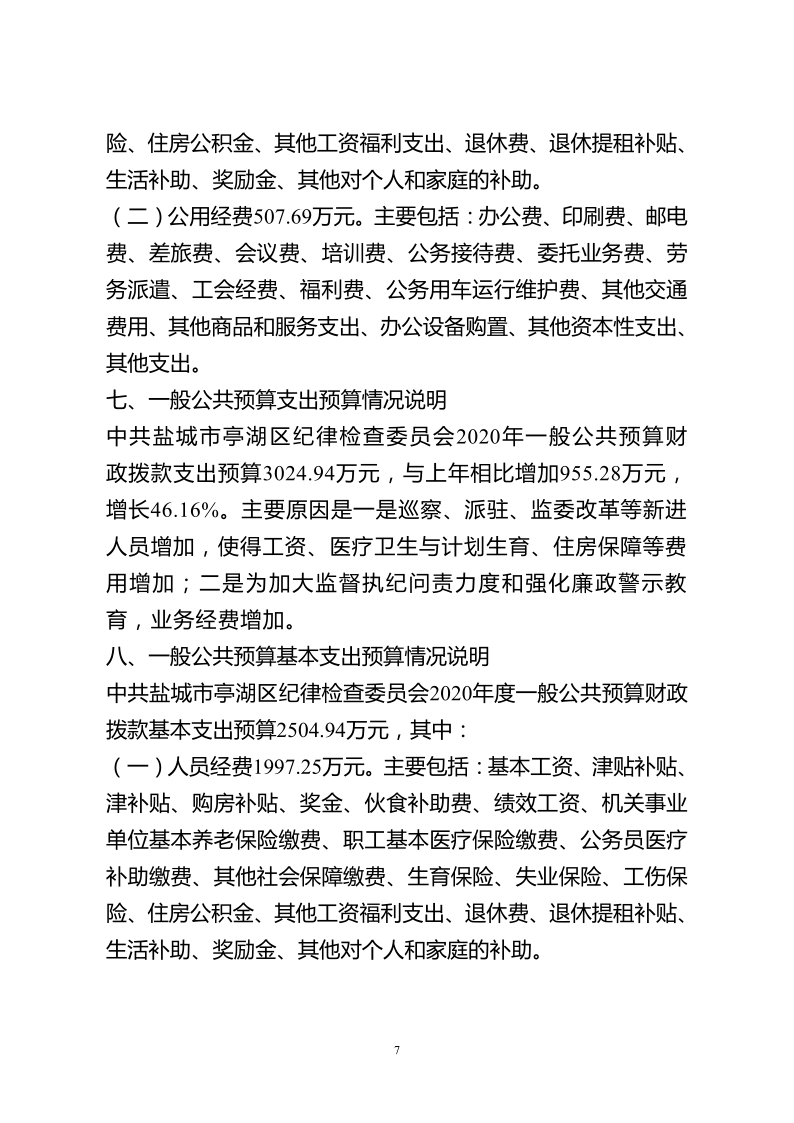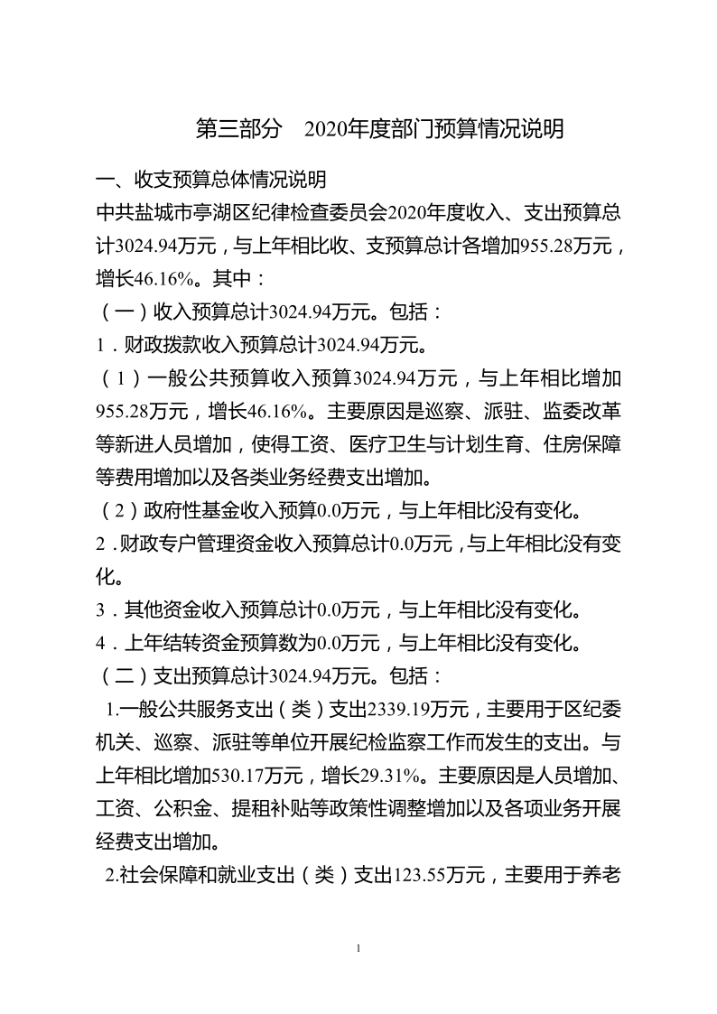 中共盐城市亭湖区纪律检查委员会2020年预算公开