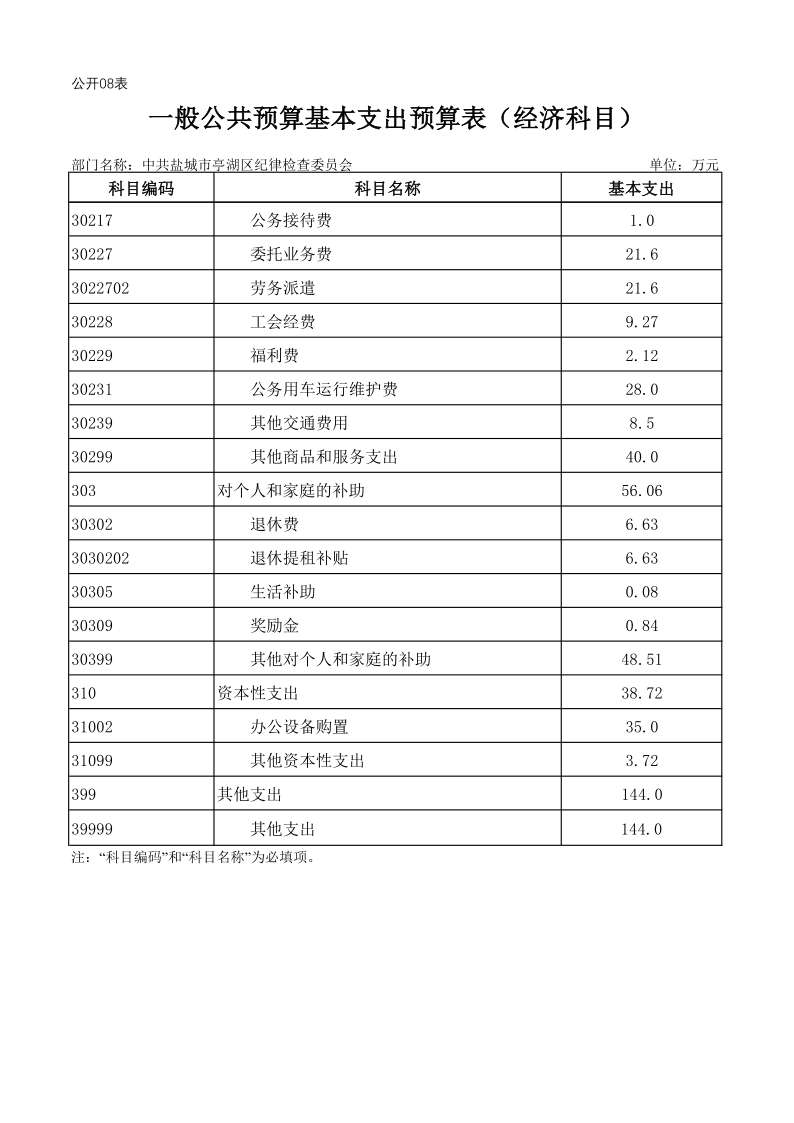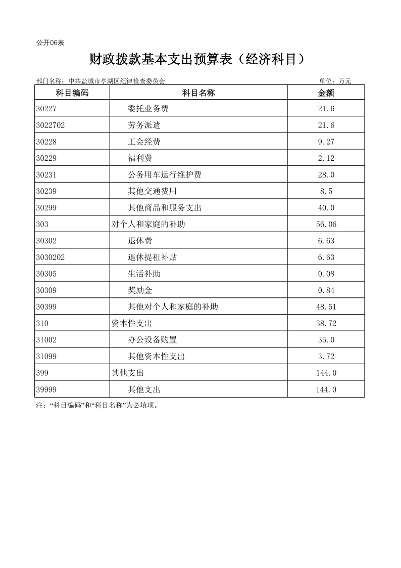 中共盐城市亭湖区纪律检查委员会2021年度预算公开