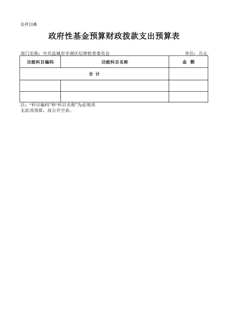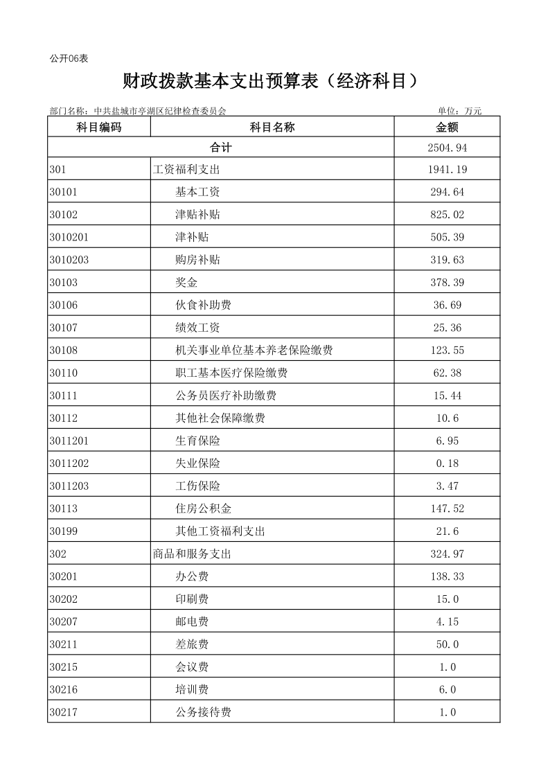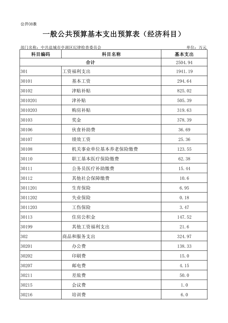 中共盐城市亭湖区纪律检查委员会2019年预算公开
