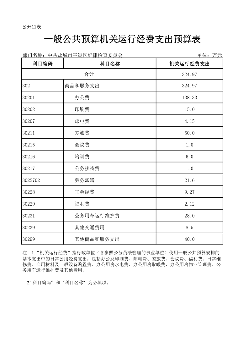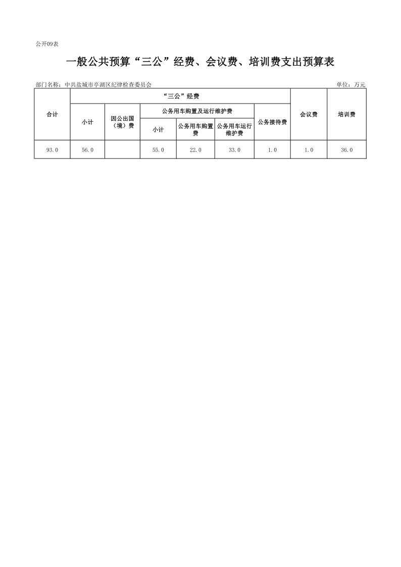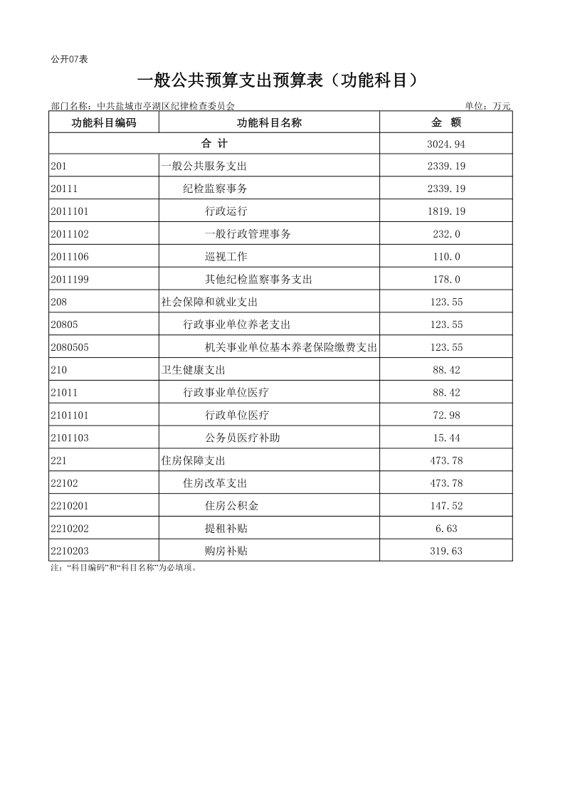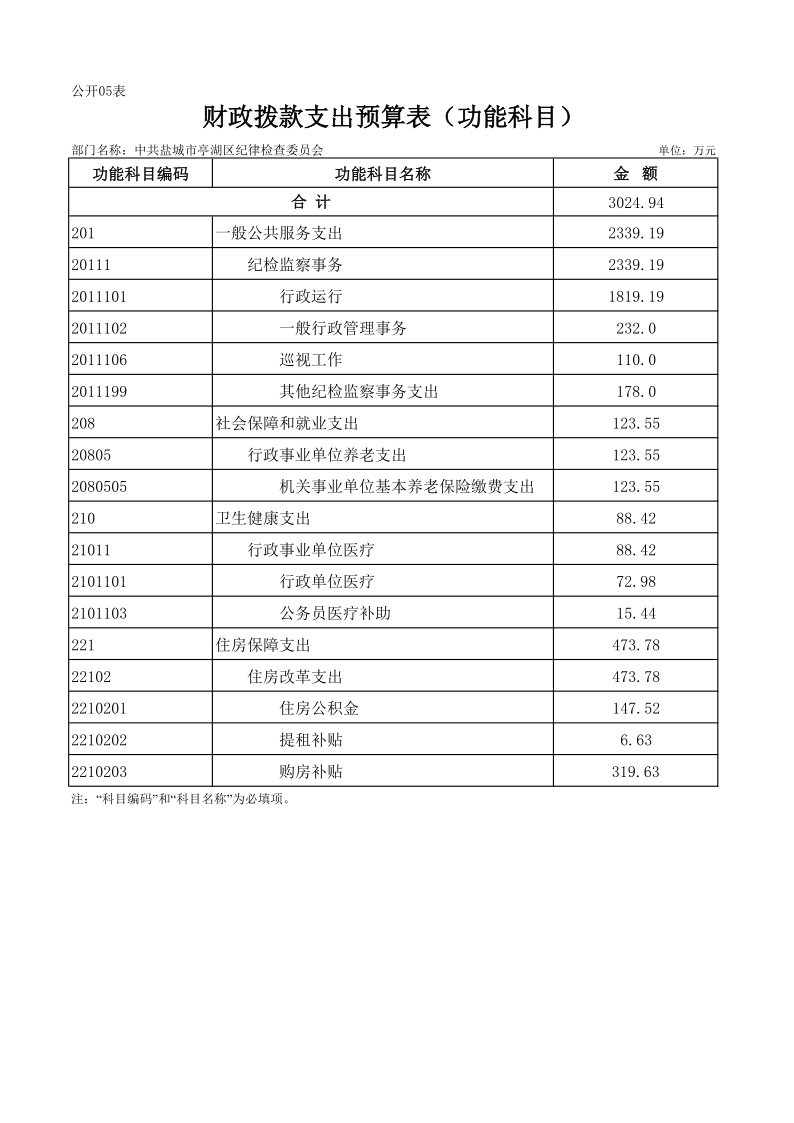 中共盐城市亭湖区纪律检查委员会2019年预算公开